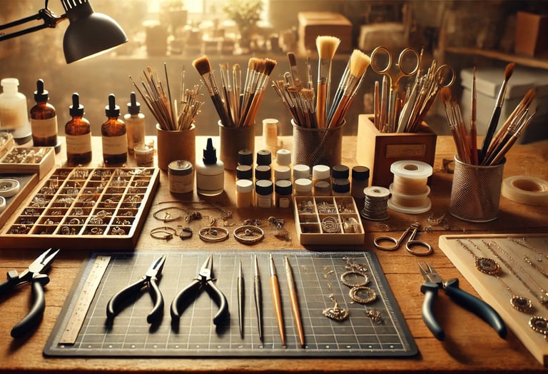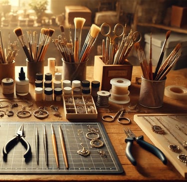 🔹 Joyería y Bisutería: Alicates de precisión, agujas de enhebrado, tablas de diseño, martillos, limas y herramientas para trabajar con metales, resina y cuentas.